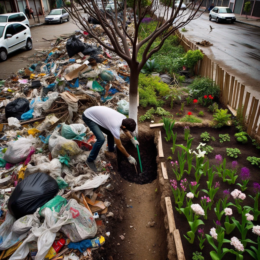 Hasta de un basurero puede salir un jardín en flor, como muestra la imagen del lateral.